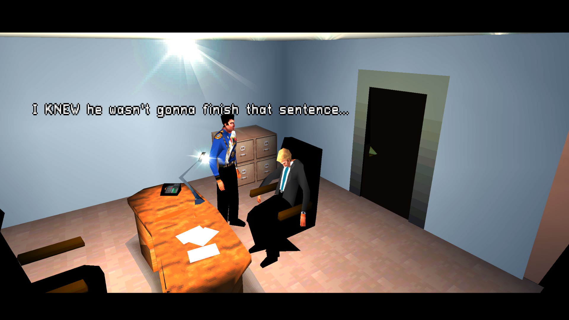 Although, in the end, the finished product doesn’t run much better. The PS1 port, released about a year after the N64 version, has FMV cutscenes, voice acting, different lighting and effects, and new sound effects and music. It even has Dolby Surround sound. However, even in the indoor scenes, the frame rate frequently drops below 15.