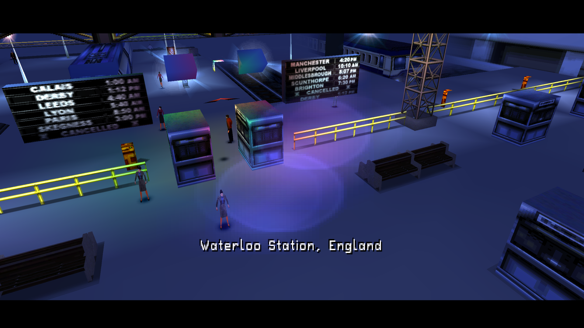 Where the N64 version is a bit dull visually, the PS1 version really cranks up the contrast and saturation for a dramatic presentation.