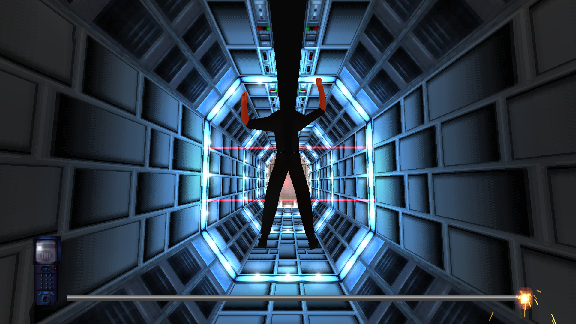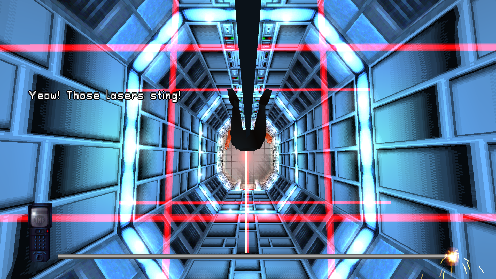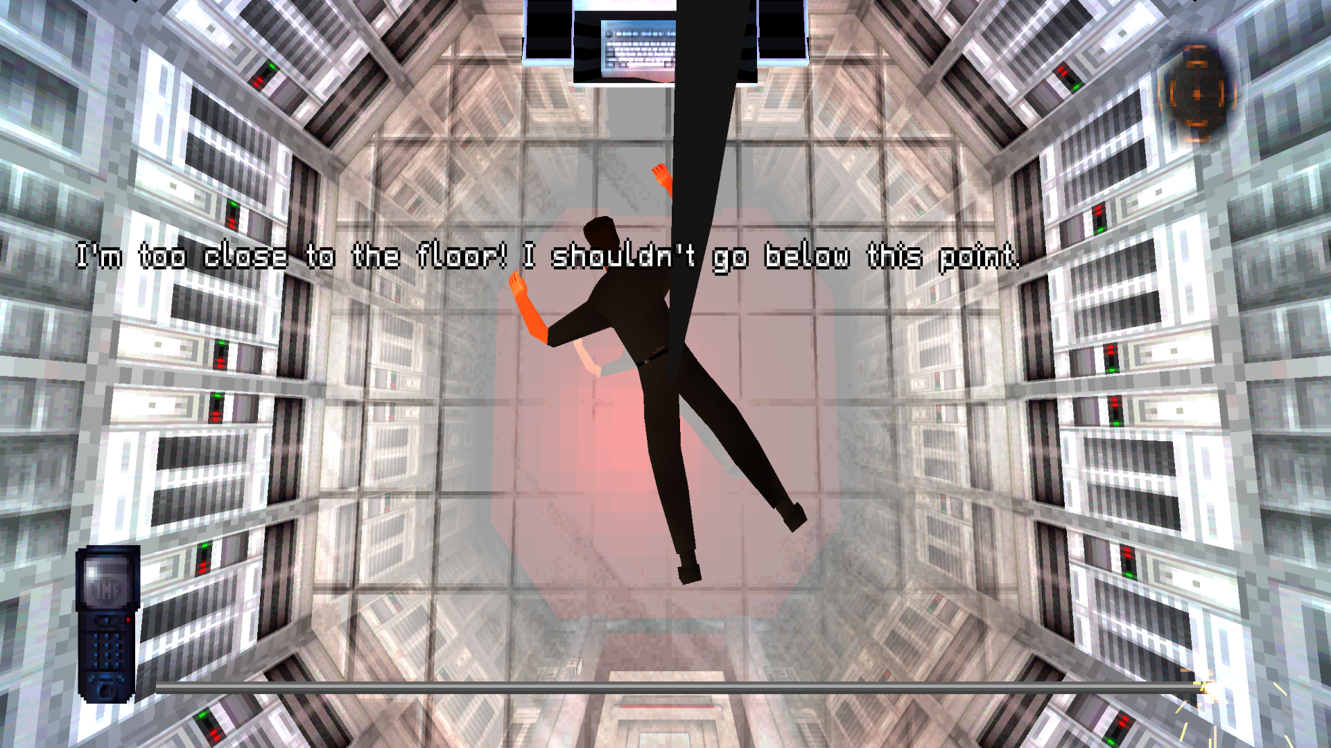 Unfortunately, this is actually one of the most frustrating parts of the game. Within a time limit, you have to swing to one side to activate the card reader, then to the other to use the computer. It’s a simple concept, but the clunky controls conspire to make this a very frustrating scene.