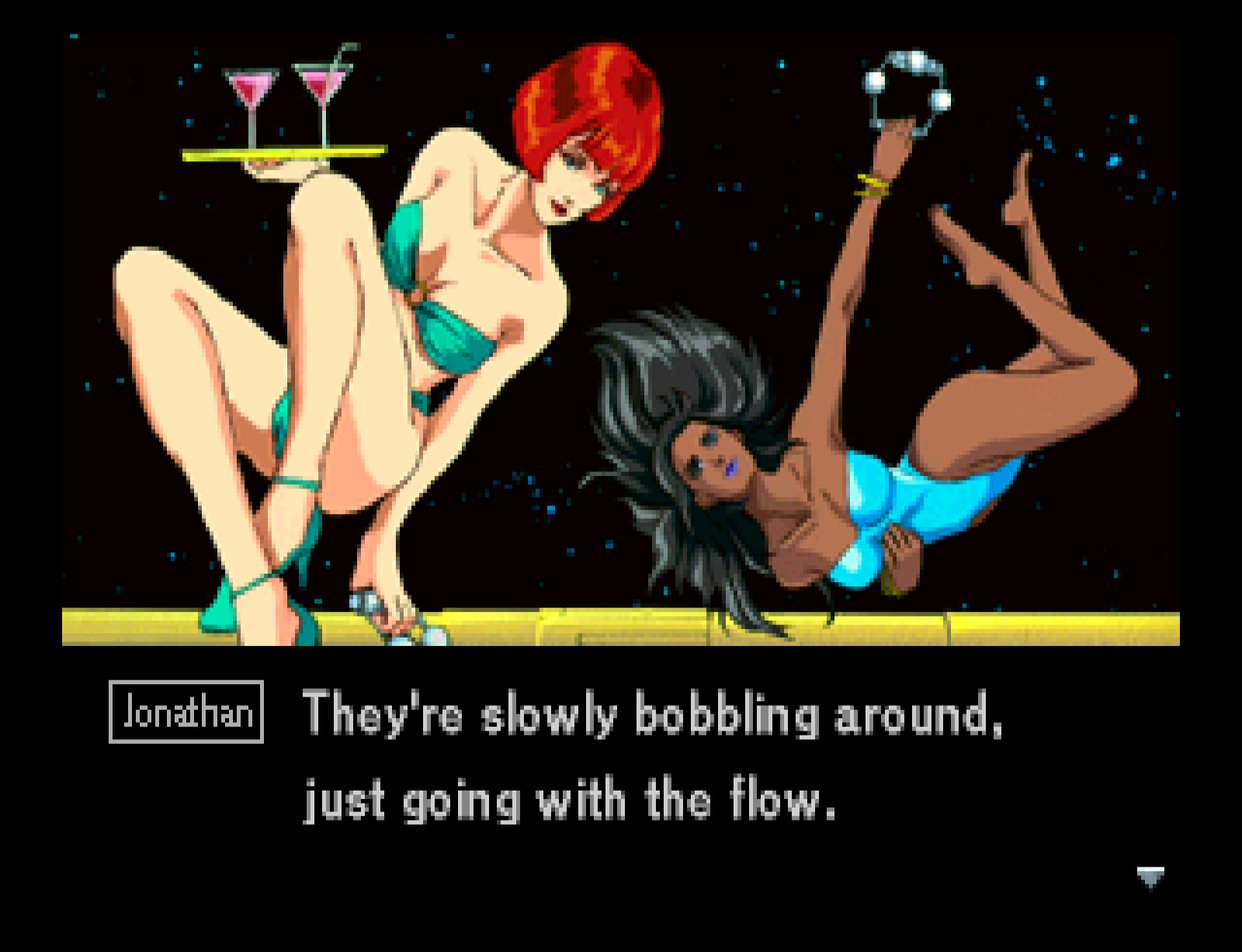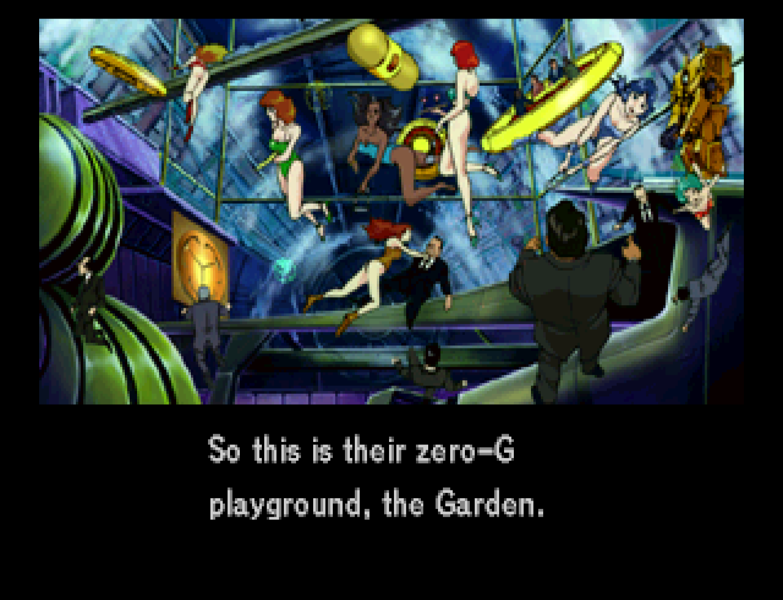 Which has to mean that at some point Kojima definitely fantasized about a zero gravity party with scantily-clad hosts floating around.