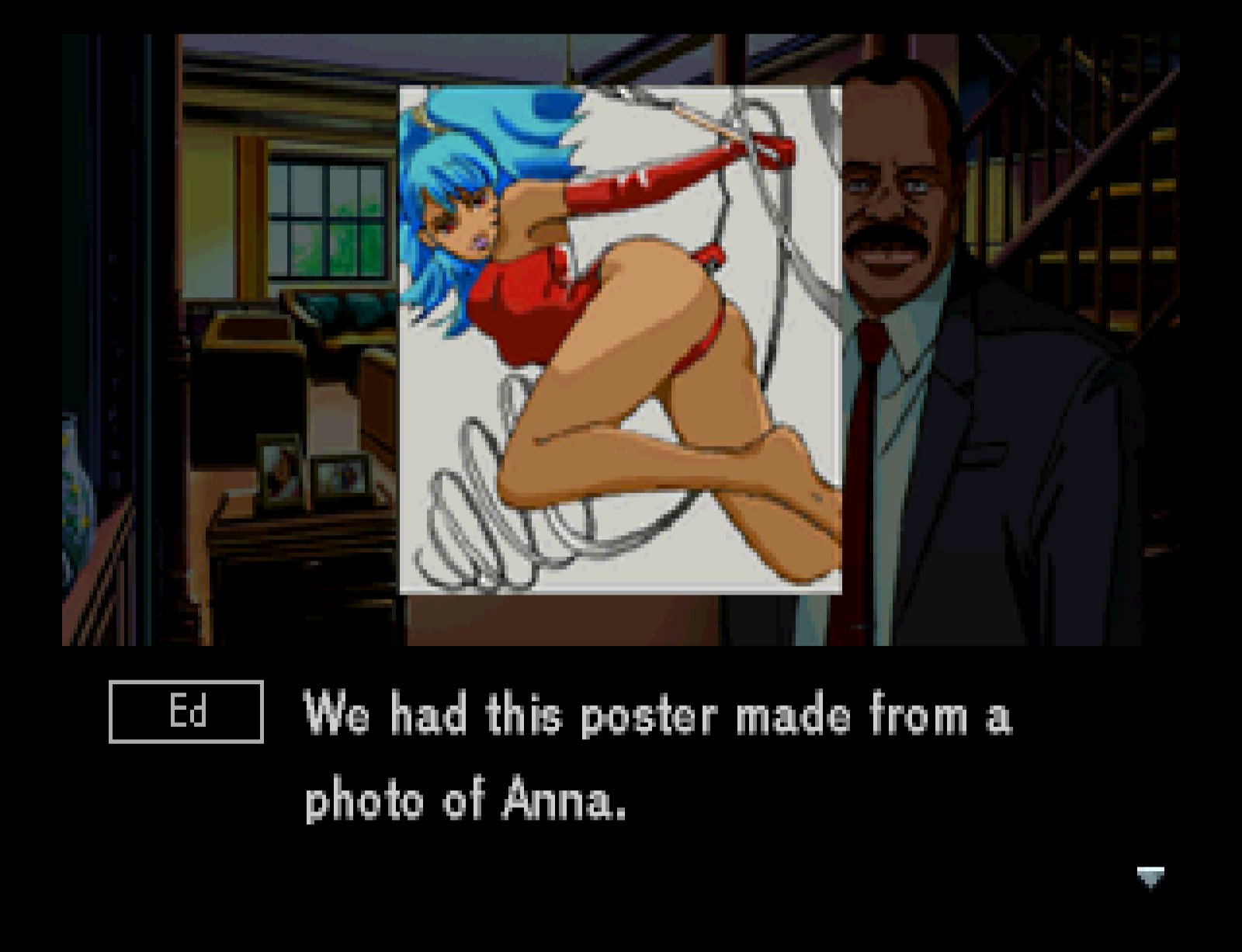 One thing you have to keep in mind with Policenauts, like any other cultural artifact, is where and when it was made. The main character, Jonathan Ingram, is the classic vision of a horndog male. 30 years ago in Japan this was not surprising or offensive. In fact, it was celebrated; supposedly the Saturn version has more opportunities to use the “Touch” command on women, as well as extended breast-bouncing animation for when you do.