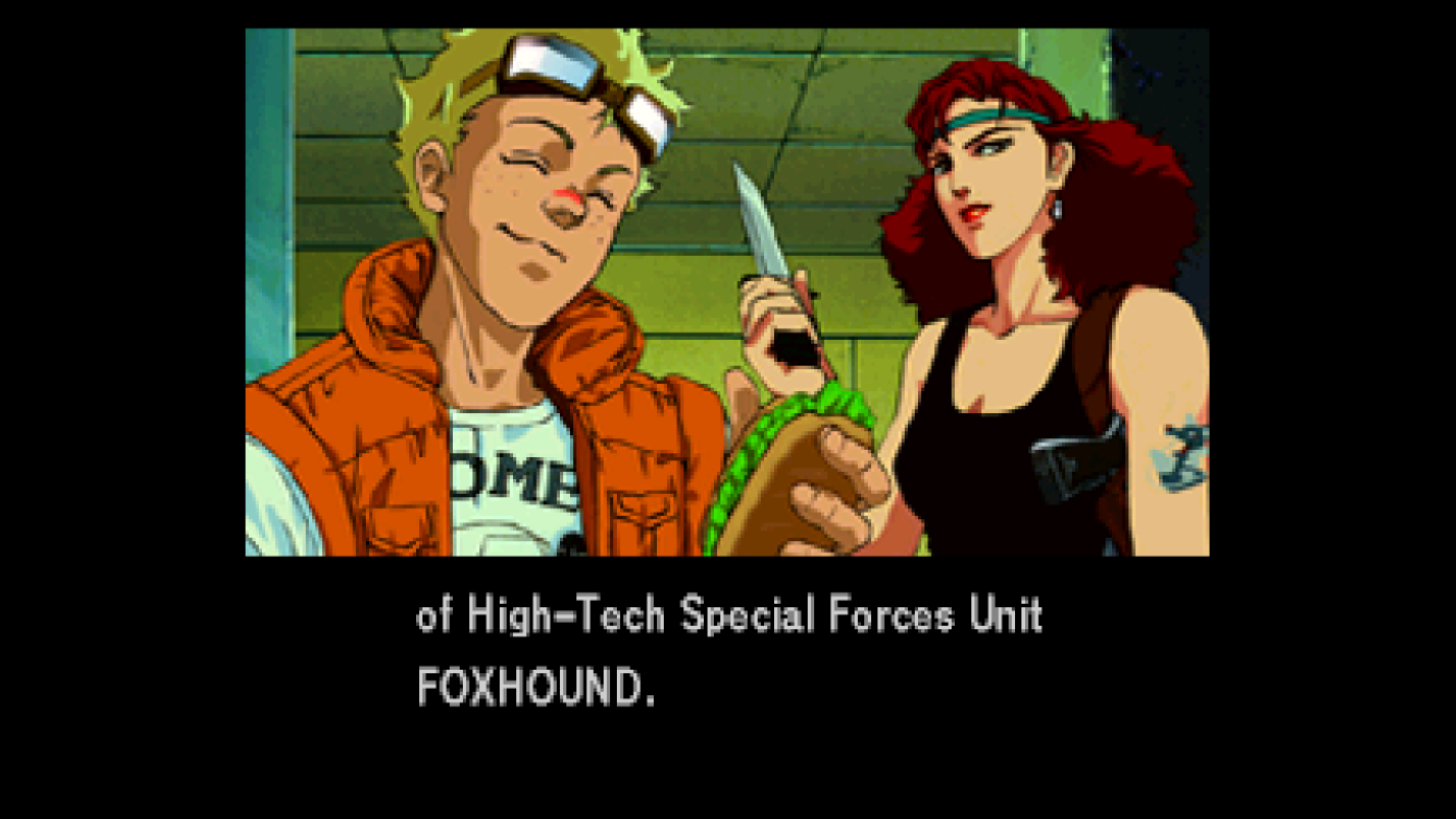 FOXHOUND, the special forces group formed by Big Boss, was also featured in the first Metal Gear. But Metal Gear Solid, first released in Japan in September 1998, is actually Meryl’s second appearance: the first was right here in Policenauts! Nowadays it seems like a comical re-use of a Kojima character, but before 1998 this would have been the first time anyone had seen Meryl.