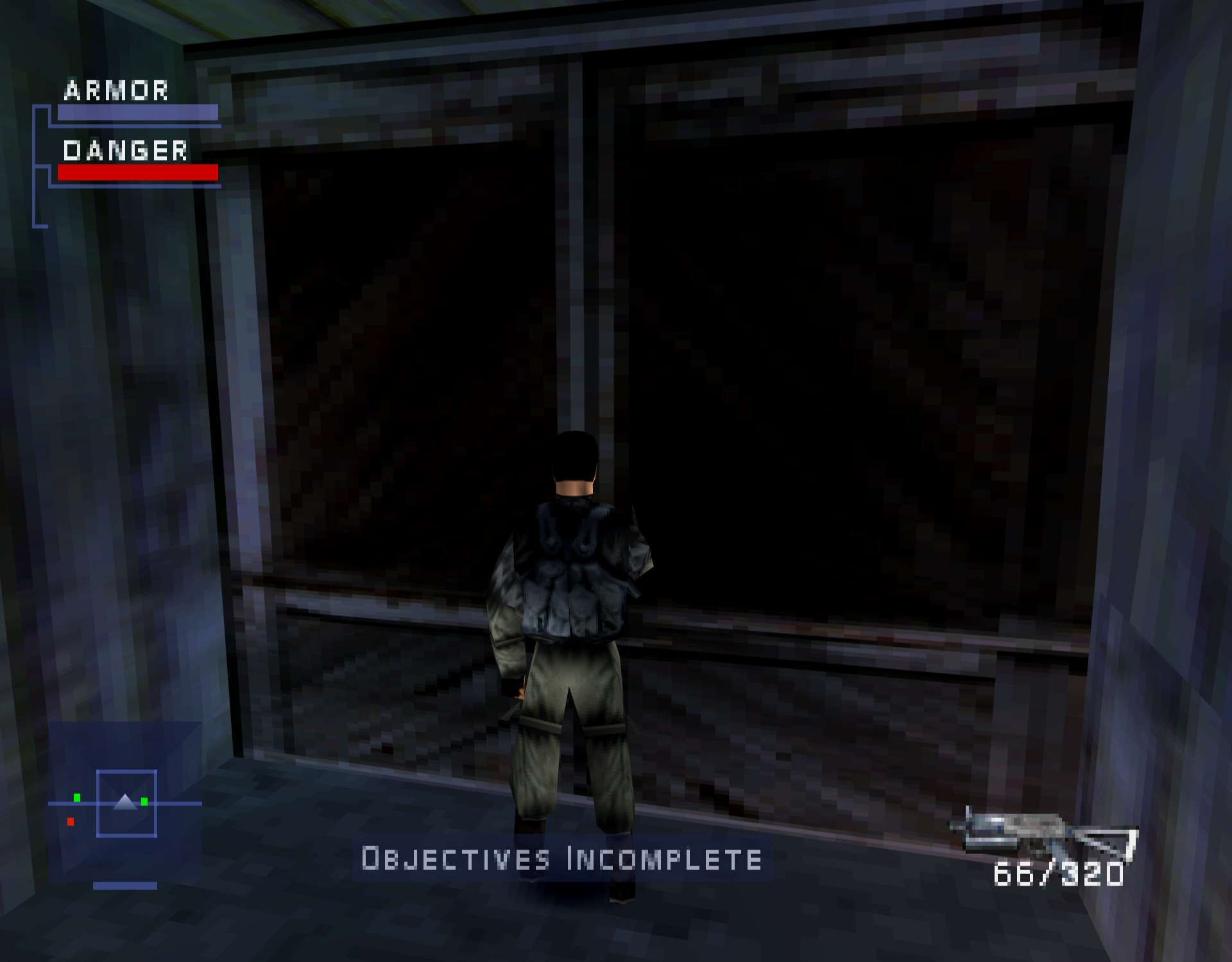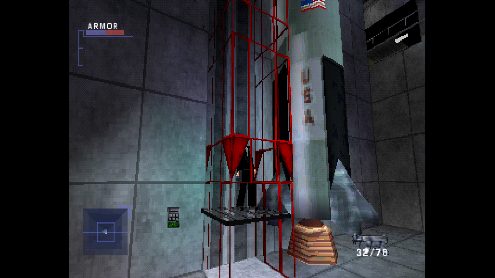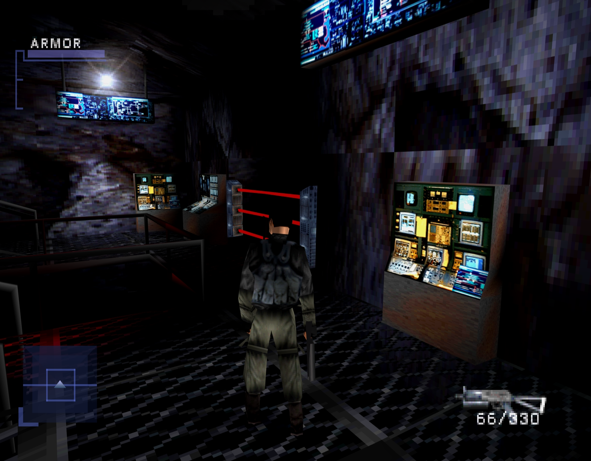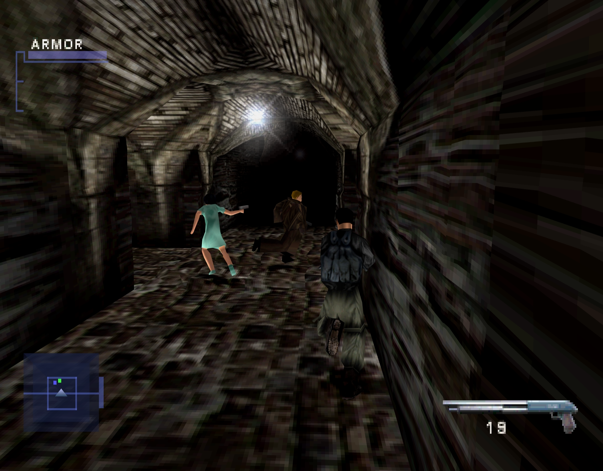 Most of the cut scenes are pretty lame, just like Mission: Impossible; they look like they’re rendered with the in-game engine but the compression makes them look worse than the actual gameplay. But I always thought this was a cool scene: you fall through this skylight and the glass shattering is the epitome of 90’s CGI. It looks pretty crappy by today’s standards but when I see this effect I’m 12 years old again.