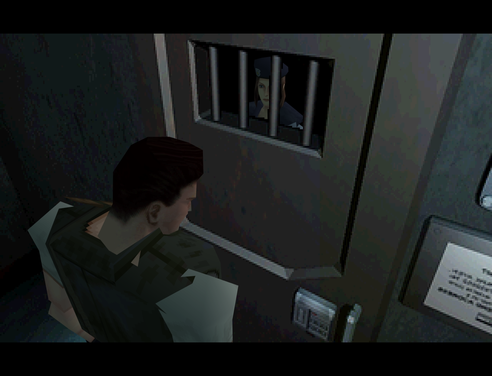If you read a walk-through, they’ll tell you to go straight to the elevator and fight the Tyrant before you go free your coworker from the jail. However, if you do that, you miss this little scene.