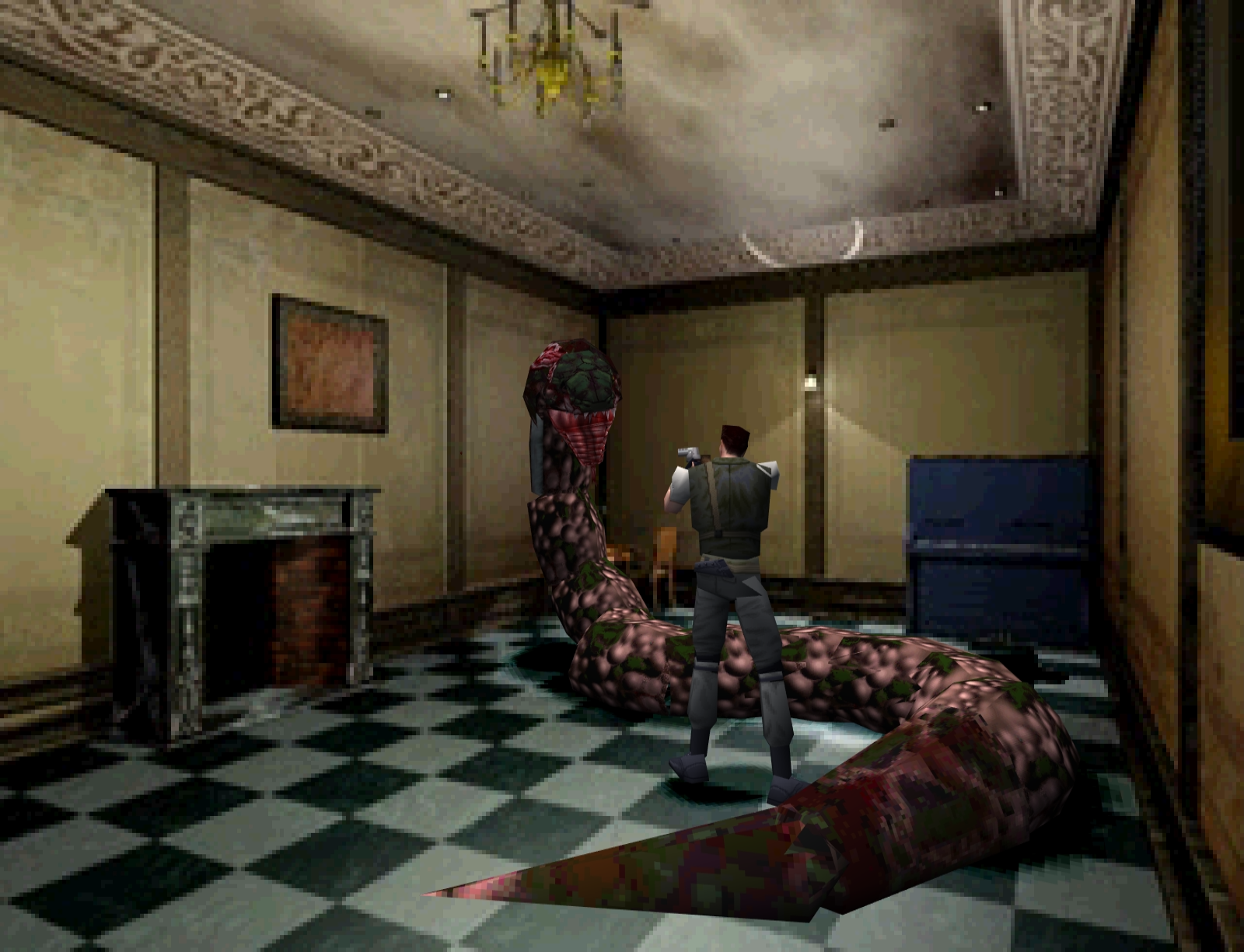 The last days of an old technology are better than the first days of a new technology. 3D camera angles were in their infancy in 1996; that year’s Super Mario 64 blew minds for having a 3D camera that was actually pretty damn good when everyone else could barely figure out how to make it work in the first place. The Resident Evil series used fixed camera angles better than any 3D camera devised up to that point, and I think it still stands up today.