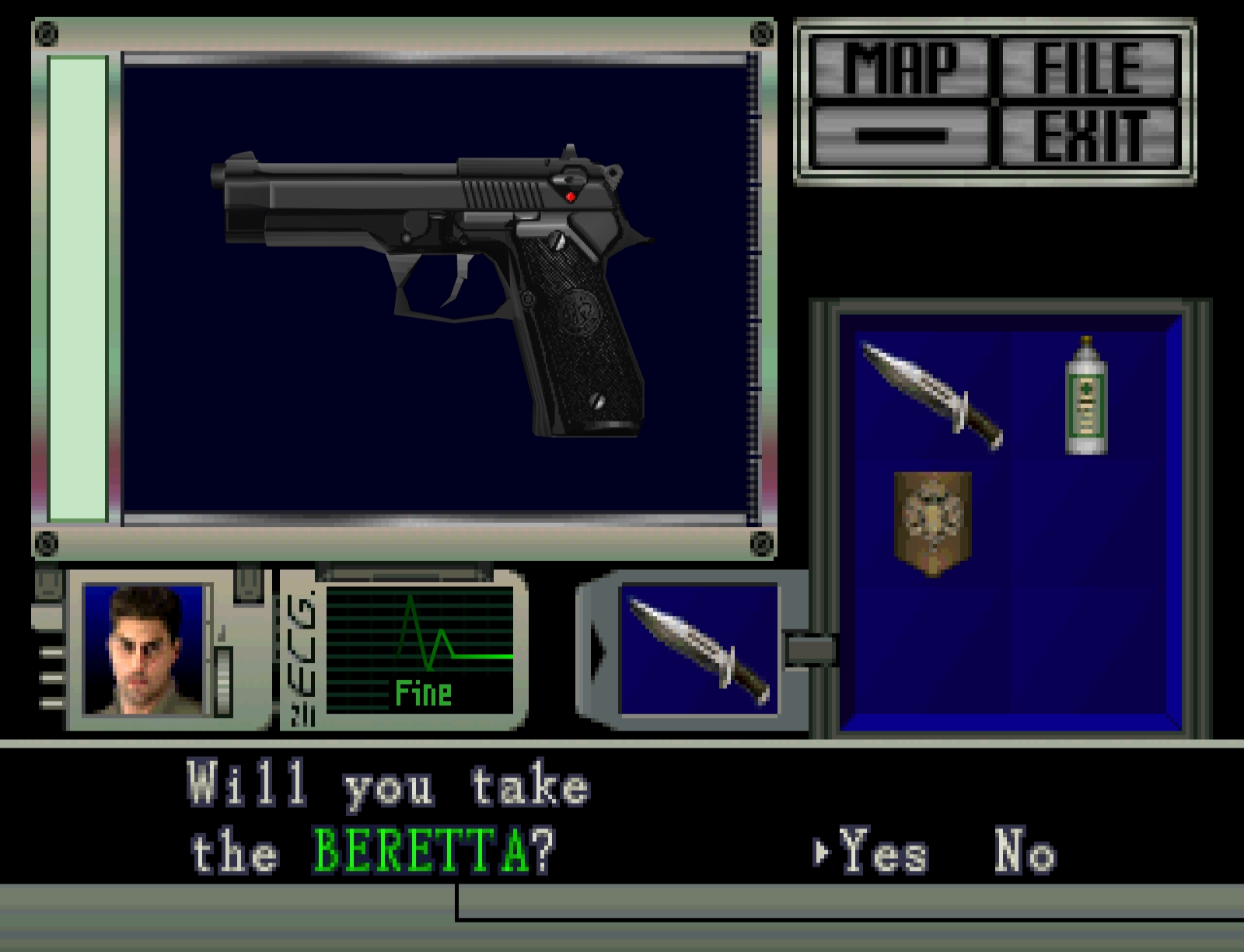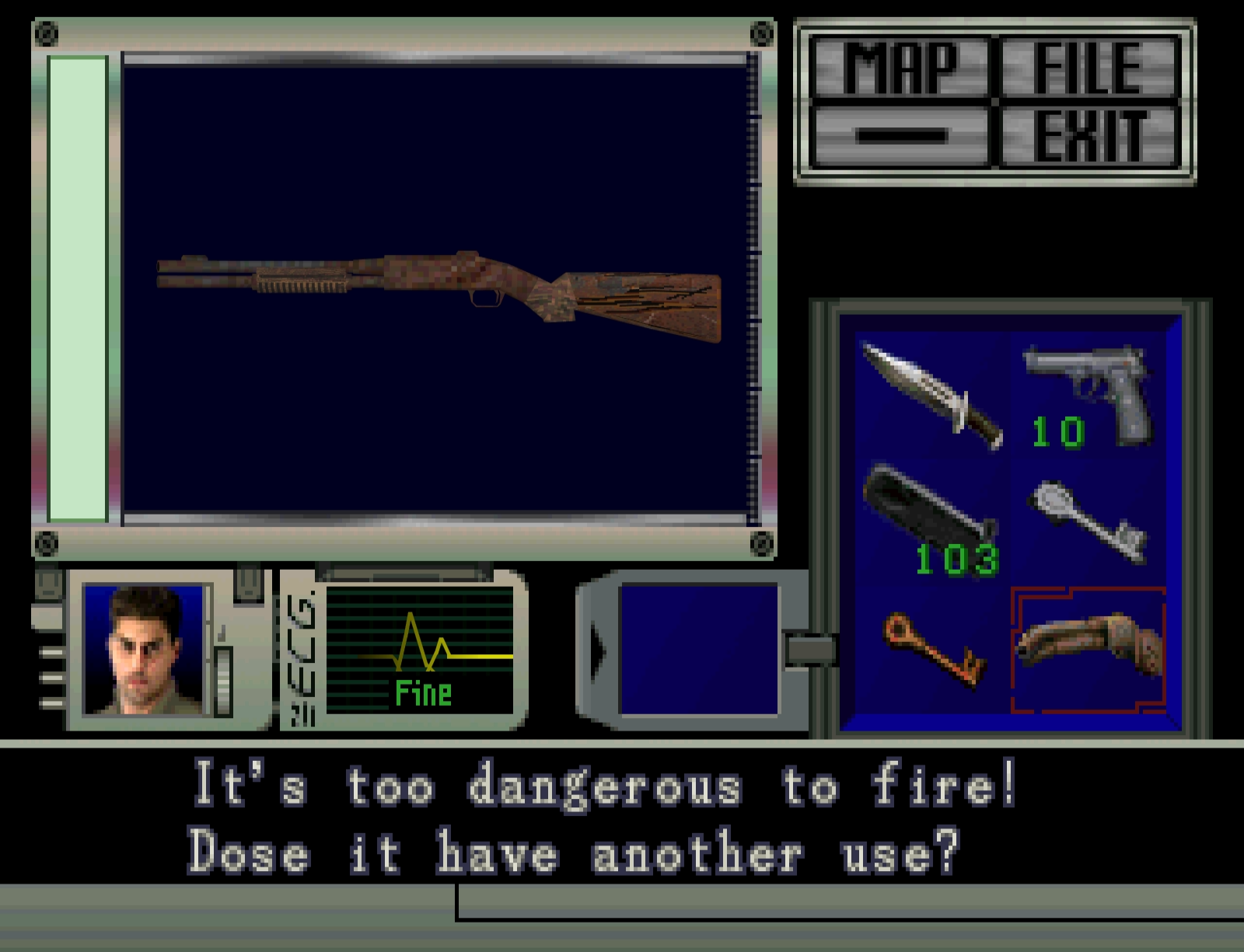 So far I’ve played the original Resident Evil with a mod that reinstates the auto-aim (present in Bio Hazard, as well as the Director’s Cut versions) and adds a quick turn function similar to Dino Crisis. I played a mod called “True Director’s Cut” which mainly restores the uncut and in-color FMV’s, but also adds a couple other cut tidbits and optionally, restores the original soundtrack to the Dual Shock edition. Then I played the actual Director’s Cut Dual Shock just to experience the soundtrack for myself. Finally, I played the original Japanese release of Bio Hazard.