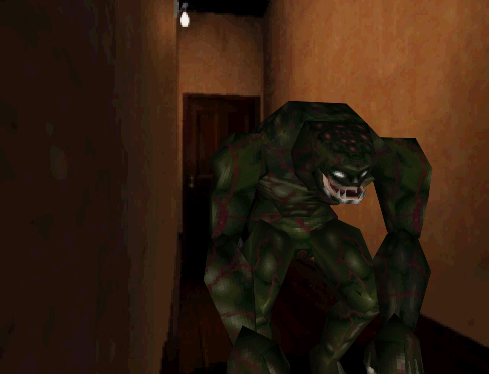 This scene should be familiar to anyone who has played the game. I have loaded so many save states at the beginning of this hallway trying to make it through here unscathed.