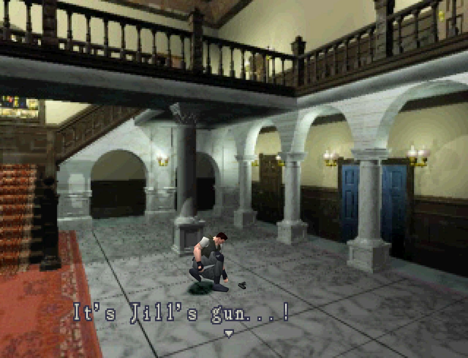 Between the two playable characters, the overall game is essentially the same, but there are lots of small differences. In Jill’s story, she just sits down and plays Moonlight Sonata; in Chris’ story he has to recruit Rebecca to play it.