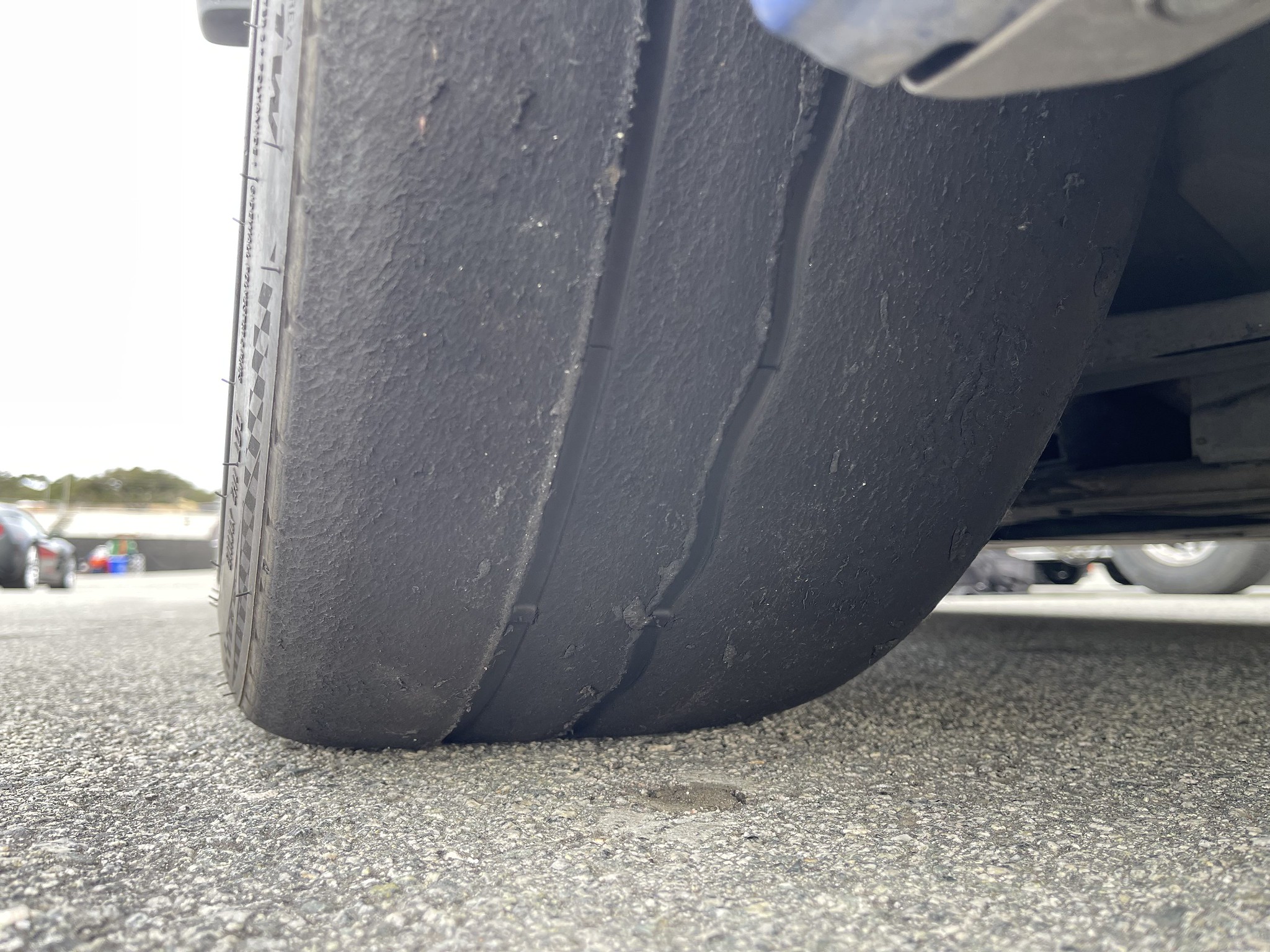 Ah yes, my track tires. This is how I started the day. These are Kumho V730’s in 245/40/17, flipped on the wheel to utilize that remaining bit of tread. They were sitting in my garage since my last Thunderhill track day in 2022, and they were already old then. Next time I will definitely be on fresh rubber!