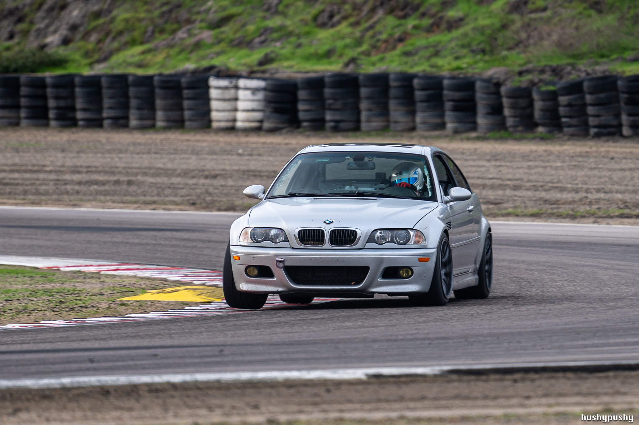The monopod also enabled me to go the other way, slowing down the shutter and getting a nice smooth pan. The previous shot was wide open at 1/250 shutter; this one is down at 1/80. I’m not a huge fan of Titan Silver E46 M3’s, but this is my buddy Chris’ car, and my main photo goal when I hang with him at the track is to get good captures of him driving his car.
