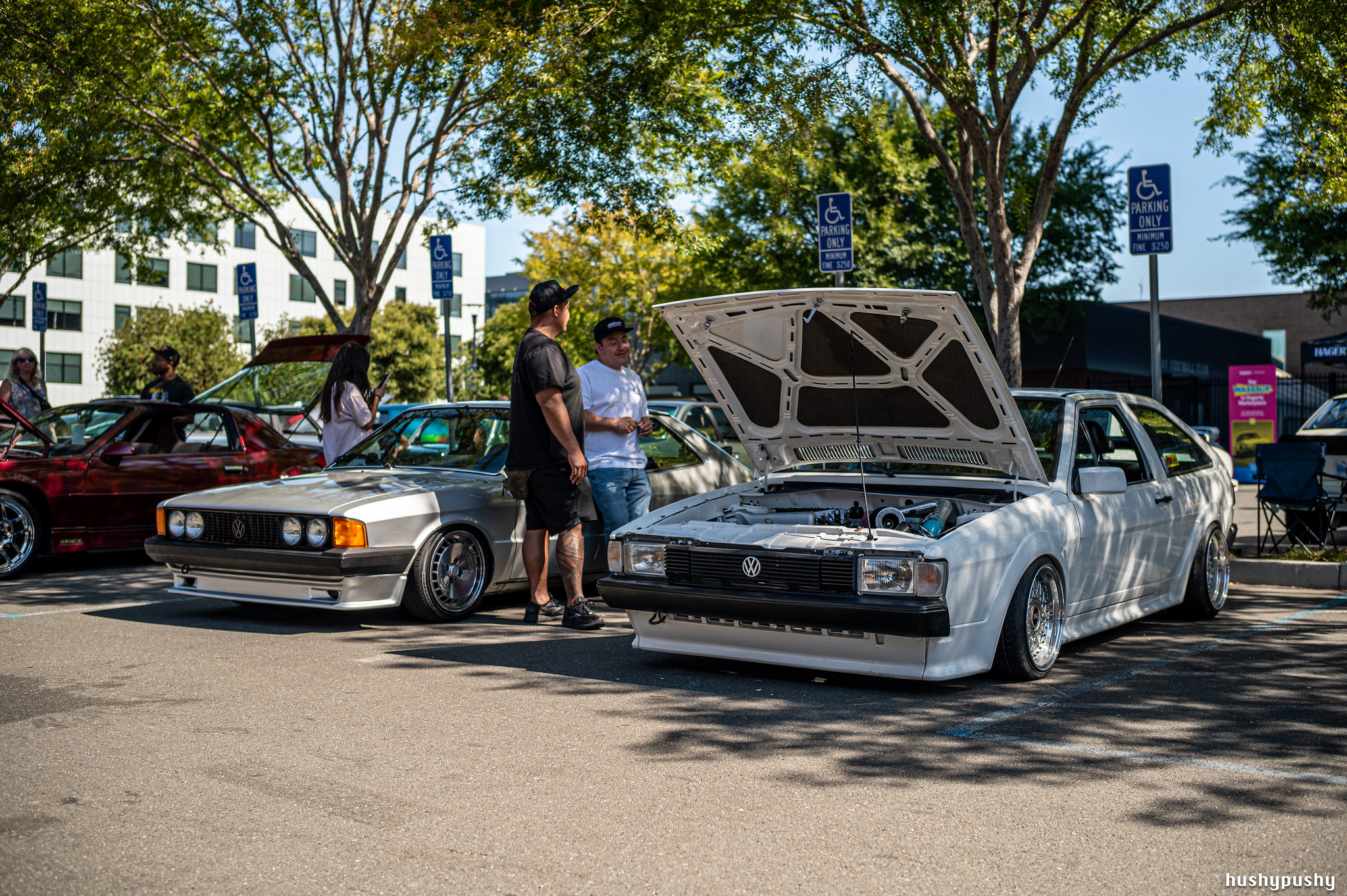 The epic parking up front in the grass or in the halls is the “Royalty” parking. Back here in the regular lot is the standard show space, which is where we tend to move away from the museum pieces and into the cars that people modify and drive, like this interesting GTI.