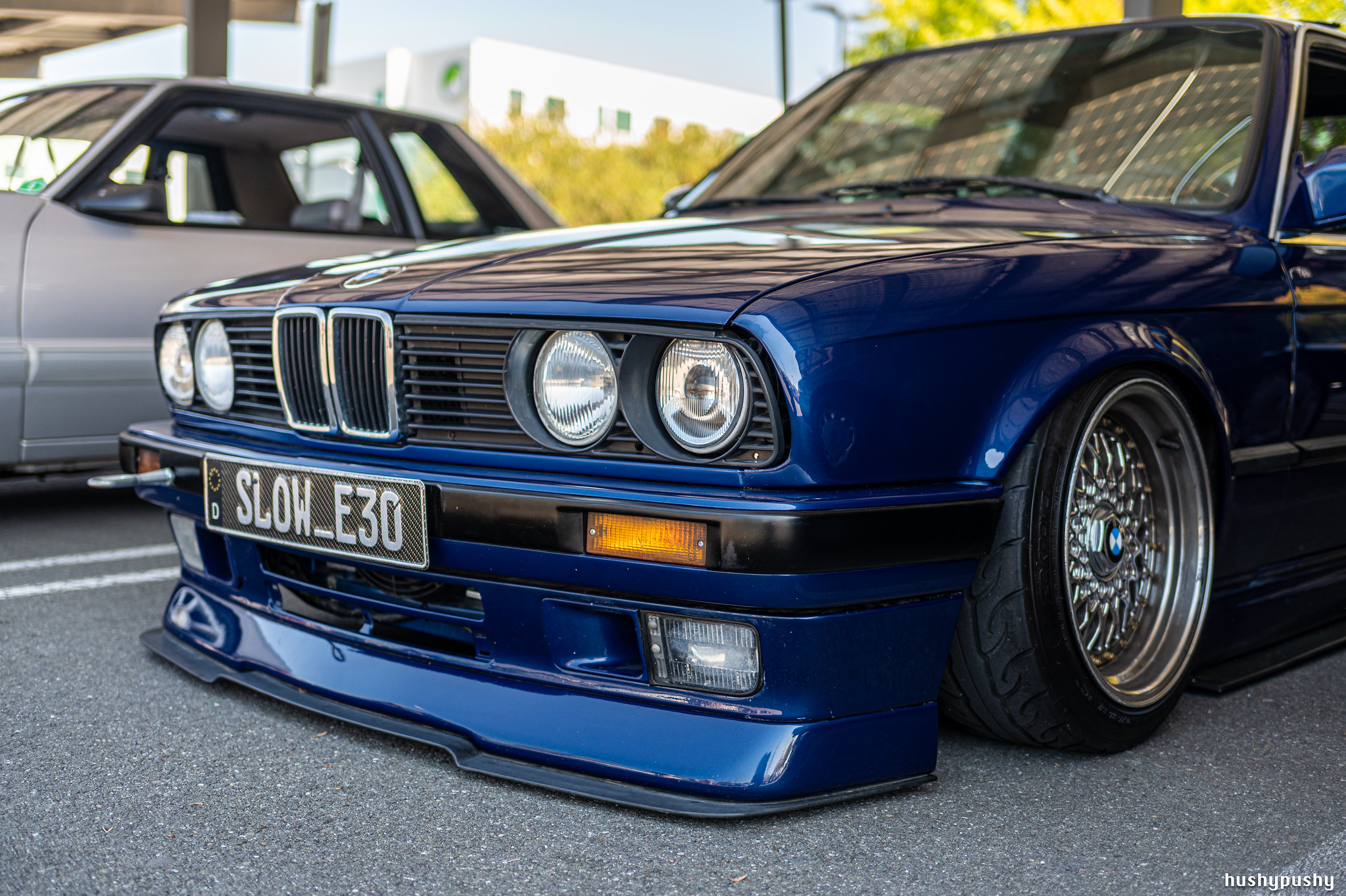 This lovely early-model E30 caught my eye. It has a track-spec stance on the SSR Hasemi wheels, backed up by the roll bar and supporting performance mods, while the stickers on the window call out Laguna Seca, Thunderhill East and West, and Highway 9.