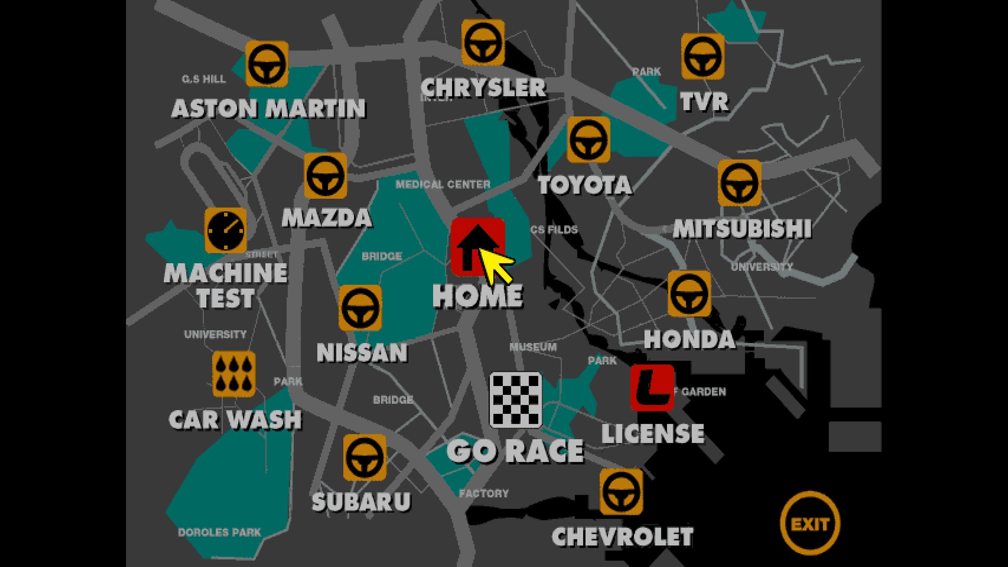 This is quite a busy home screen here in part one. They really simplified the main hub in GT2 and 3, before returning to the super busy look for GT4 and beyond.
