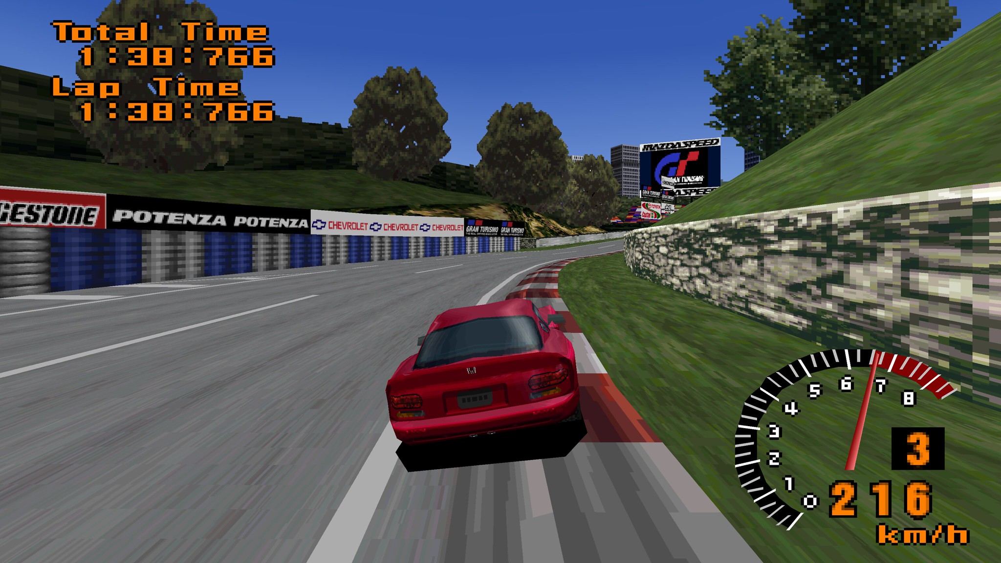The result is a game that looks and plays surprisingly modern. “Retro” graphics are coming back in style (for example, the gorgeous Old School Rally), and emulation-enhanced Gran Turismo can still hang with any of them as far as graphics and framerate.