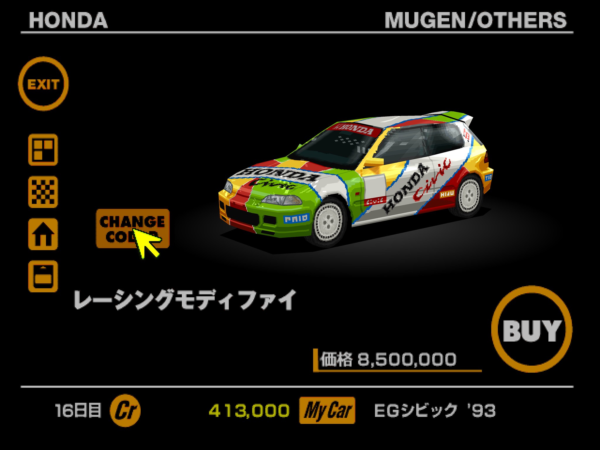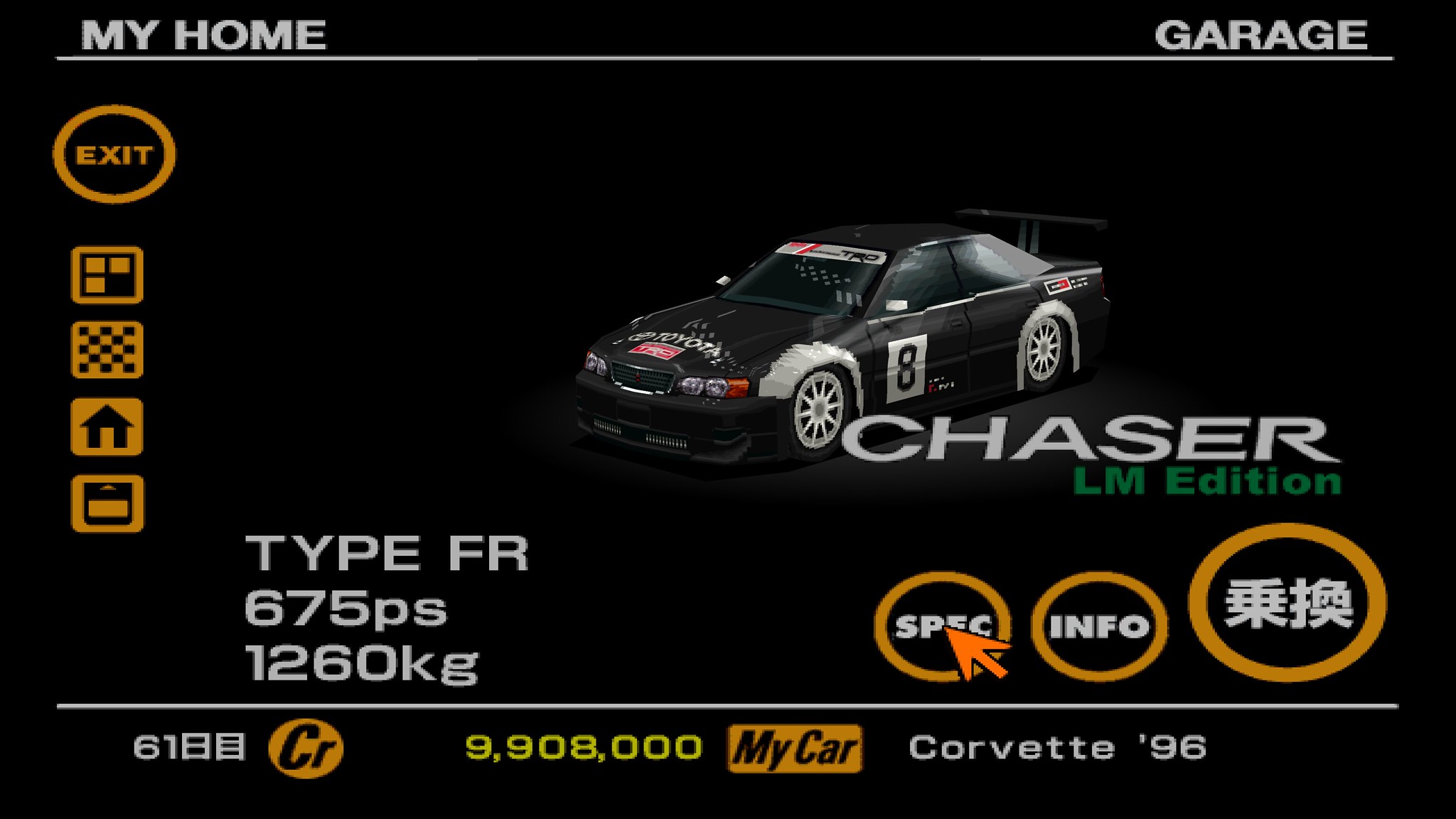 You may have noticed that I have a million credits on day one and everything is in Japanese. Well, the Japanese version has credits that roughly equated to yen, so they are exactly 100x the other versions: only 10,000 US-spec credits, I’m afraid. But there is one main reason I’m playing the Japanese version: the music. In this version, the menu music is done by Isamu Ohira, who did the menu music for the rest of the series; in the US and European releases, the music was by Jason Page. No disrespect to Mr. Page, but I strongly prefer the compositions by Ohira-san, plus they also match the other entries in the series. That’s similar to the opening movie, which features the “Gran Turismo theme song”, Moon Over the Castle by Masahiro Andoh in the Japanese version. A variation of this theme song would begin every Gran Turismo game–in Japan. The US and European versions received something different until Gran Turismo 7, the first GT with the same opening movie in all regions. Speaking of Masahiro Andoh, he also did all the in-race music for the Japanese version as well, while the US and European versions got radio-style rock and electronica. There are a few other minor differences, which you can read about over on TCRF.