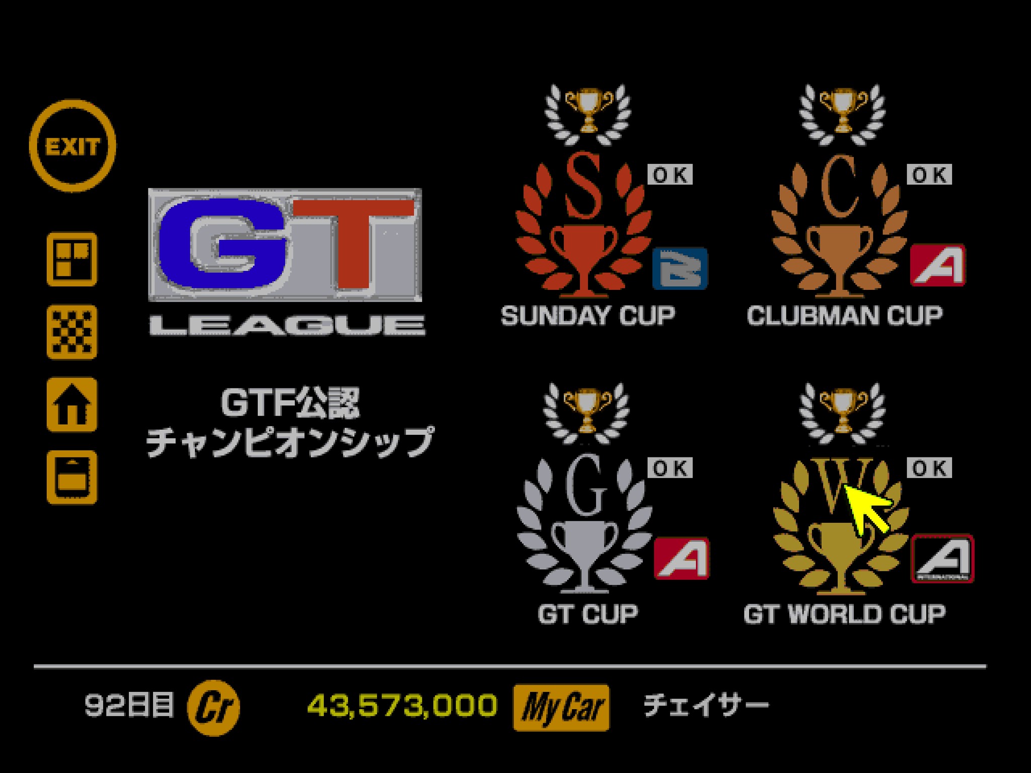 The main goal of “Gran Turismo” mode is to beat the four cups of the GT League. Each of these is kind of a checkpoint along the way; as you finish the Special Events you win cars and earn money for mods.