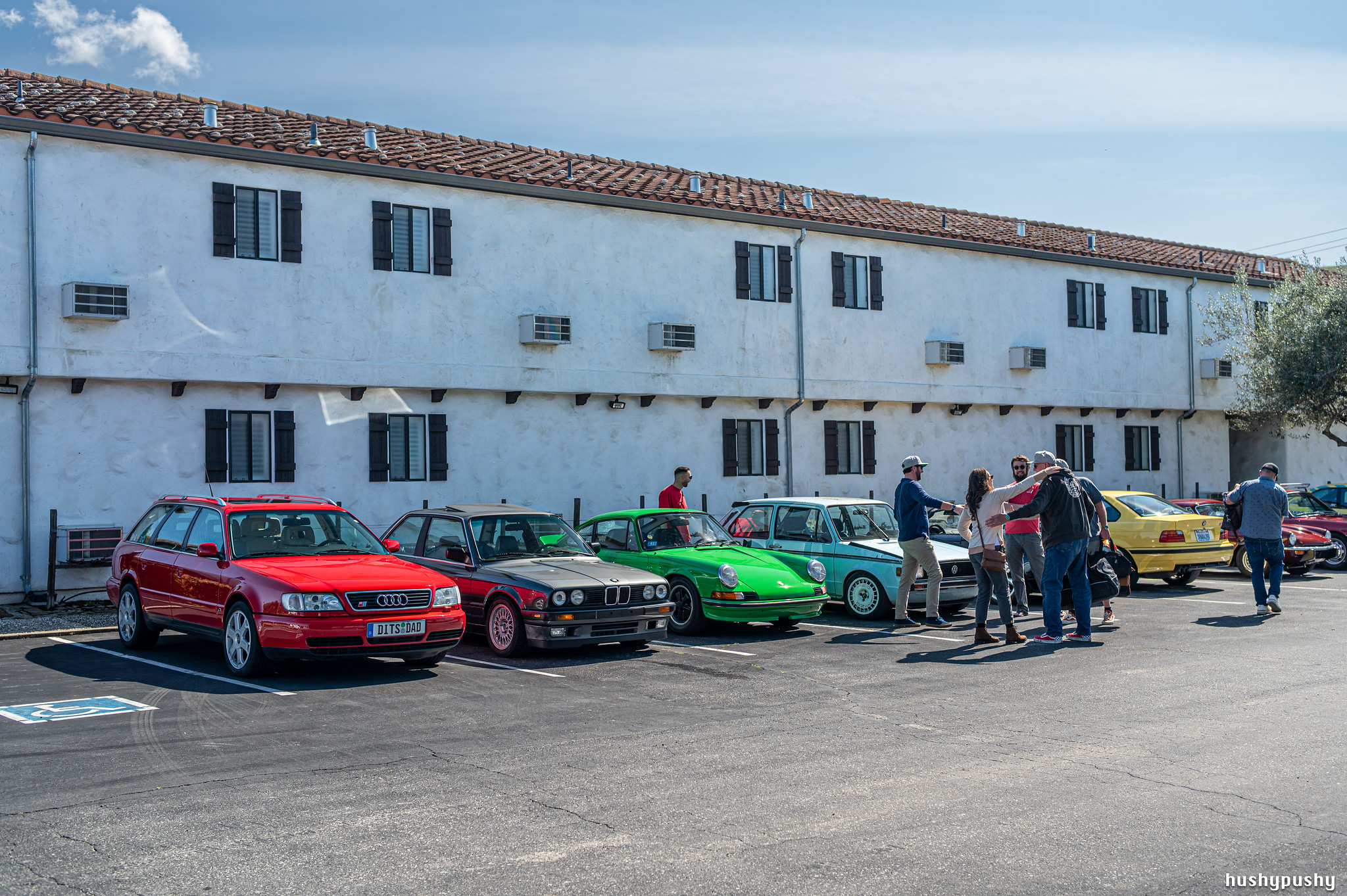 The parking lot party in full effect! Unlike some rallies which make a point of driving many miles, DWA rallies put an emphasis on hanging out with friends. In the afternoon when you’ve finished the rally route, you’re free to do whatever you want–including run back some of the route or explore the area if you wish. Most people, however, decide to chill out until the group dinner.