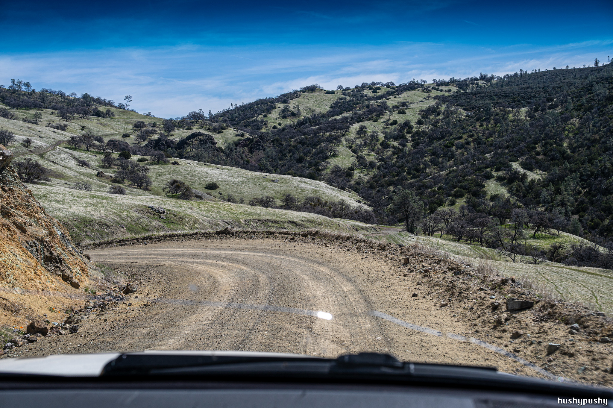 This is a two-way road, and thankfully it’s at least well-graded and smooth because everything else about it is gnarly: loose slippery surface (on a hard packed base, at least), super narrow, blind turns, with just a soft mound of dirt separating the acts of “driving” and “flying”.