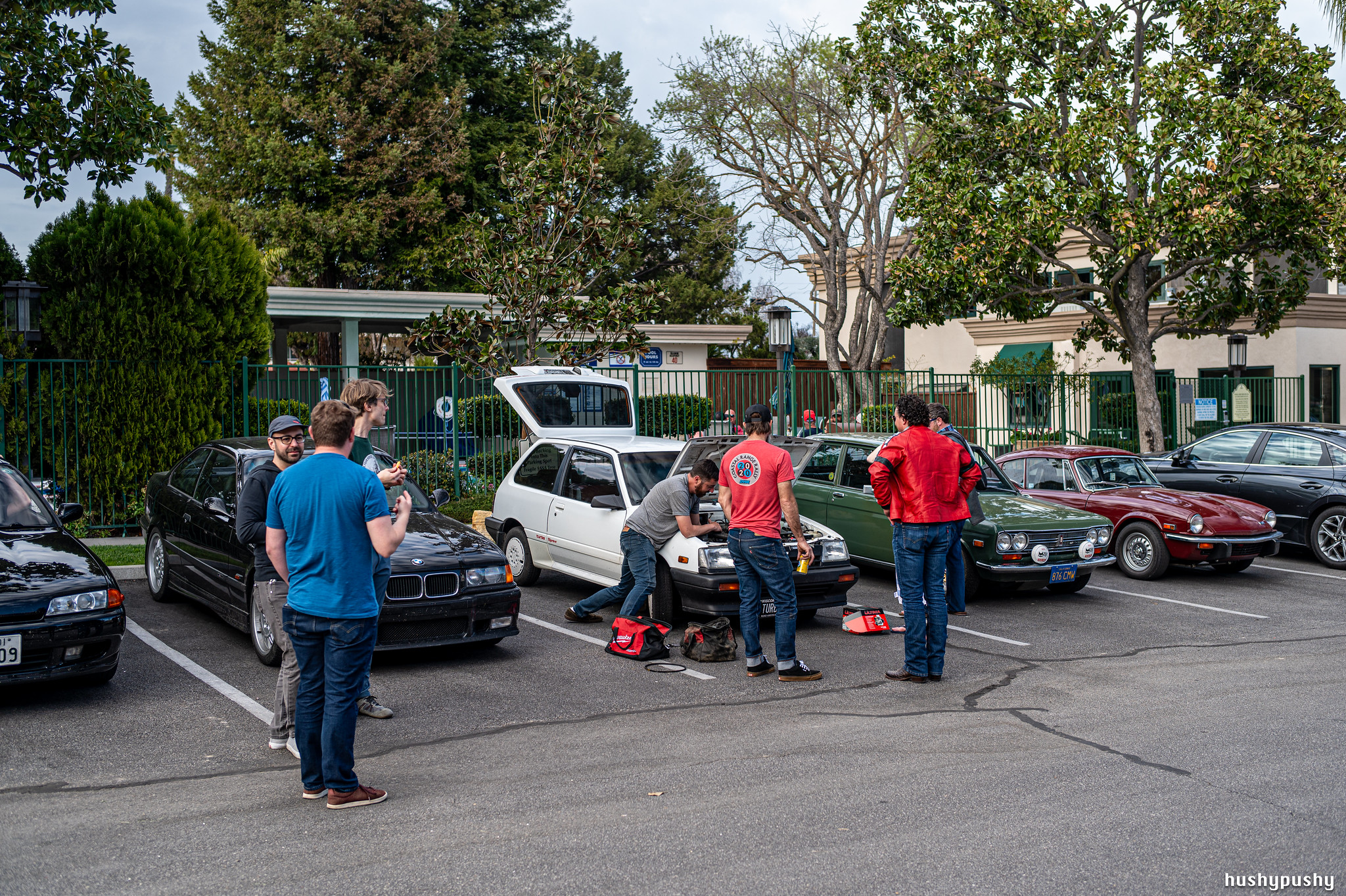 Here are the oldest cars to attend a DWA rally. It would have been amazing to see a Traction Avant and MGA out on the twisty roads, but after driving all the way from southern California, they encountered a mechanical issue and had to head home. (Don’t worry about the water on the ground; that’s just the radiator overflow)