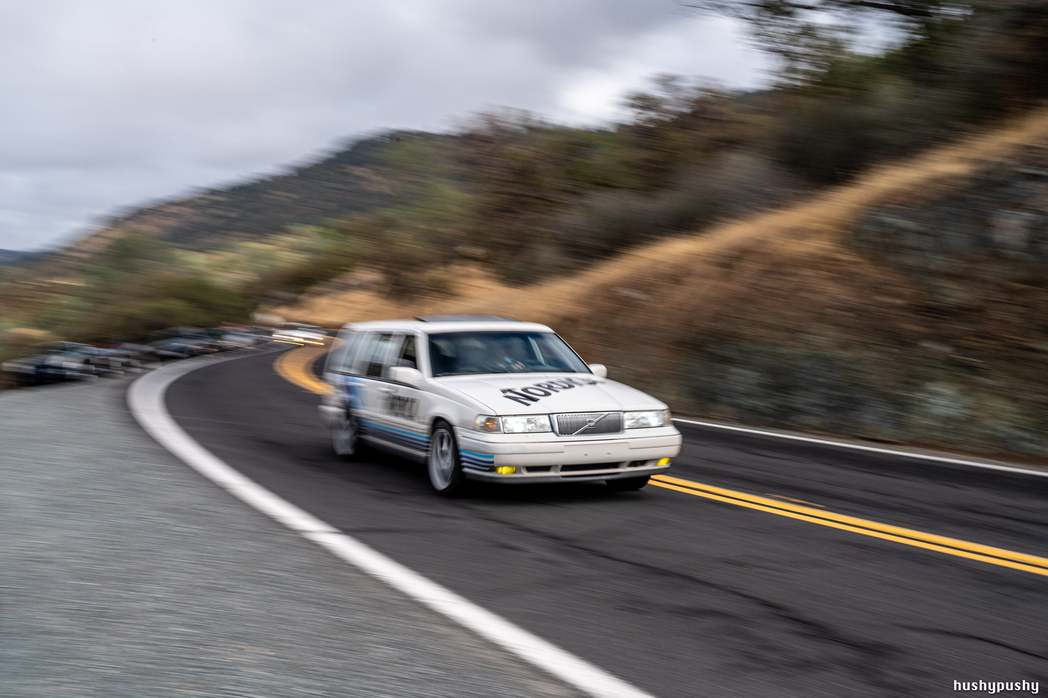 Due to mildly amusing planning shenanigans, I was not able to co-drive my usual rally ride, the legendary Vololvo. But of course, I was still very happy to see Drew out there driving it.