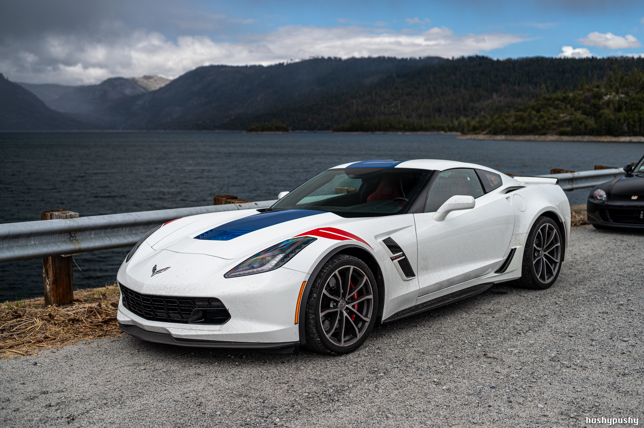 The C7 Corvette Grand Sport was released with a “Heritage Package”, a $795 option group that got you special floormats and these exterior stickers. There were a ton of different color combinations available, but only two of them had the very American combo of Red, White, and Blue. Max looked all over the country specifically for this exact color combo with a manual transmission, and then gave her the very appropriately patriotic nickname of Betsy Ross.