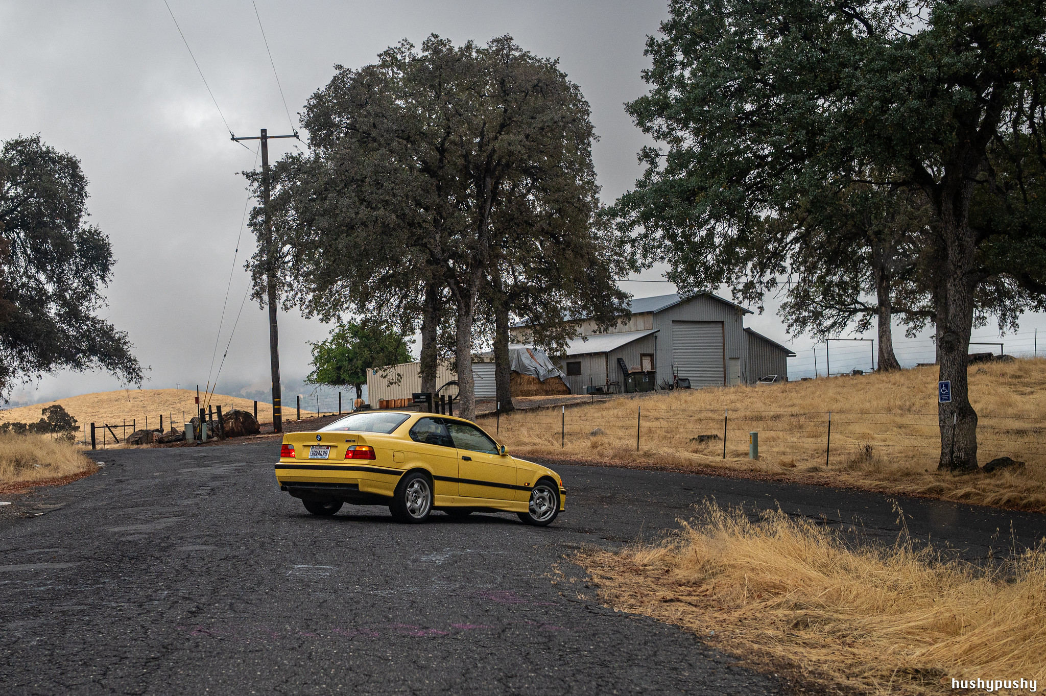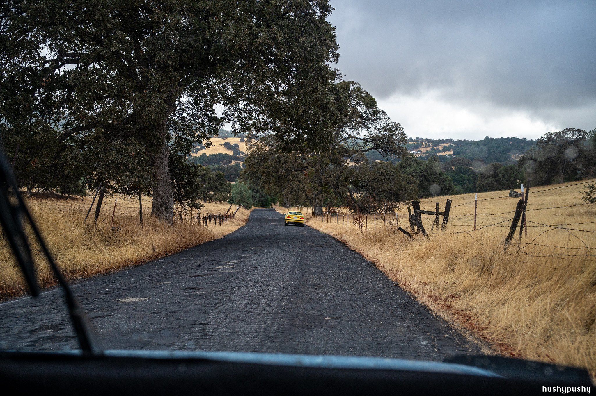 Within minutes of leaving the town square we were out on the backroads. The first road was rough and littered with potholes. Warren, the rally route master, seen here driving in front of us in his Dakar Yellow E36 M3, was pretty stoked about the happy coincidence of the very first road being the most gnarly: if you can handle this, the rest of the rally is smooth sailing.