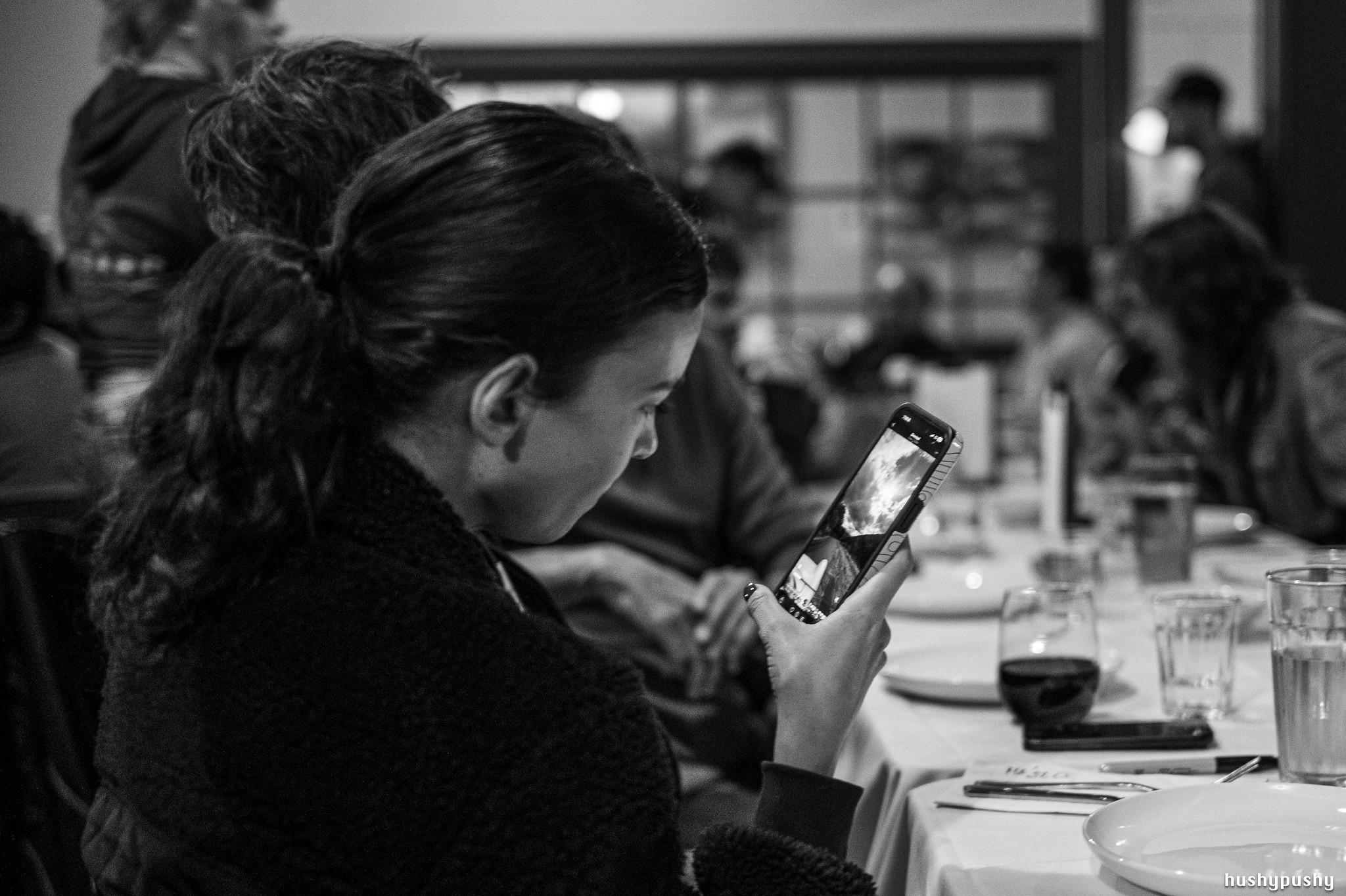 It was good times and laughs at our group dinner, even though this tiny space was oppressively loud.