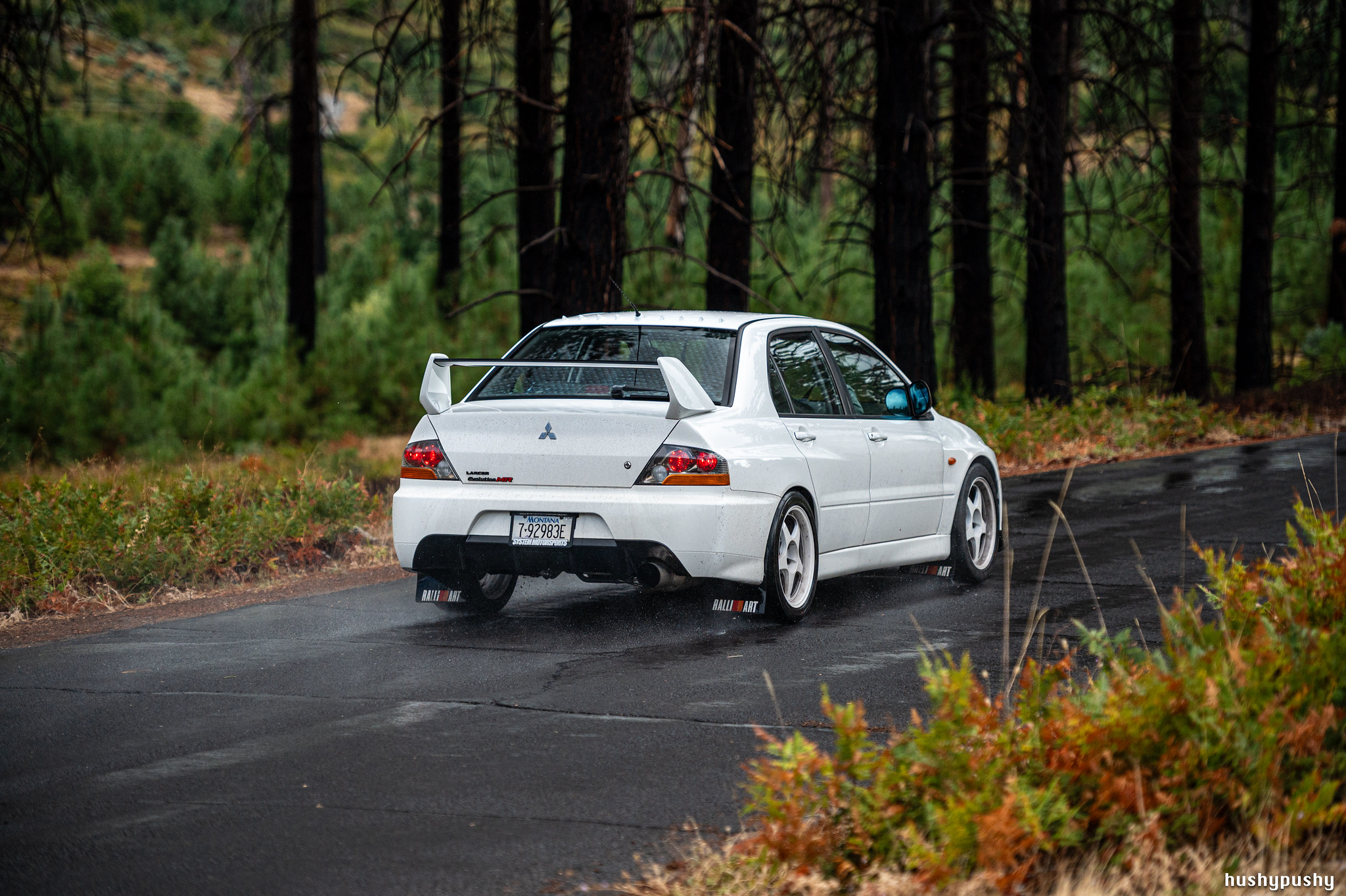 There was a bit of a shuffle when we left the dam. We’d intended to take a certain forest route to our next stop, but while en route the radio suddenly lit up with everyone calling in the same thing: the road was closed! Instead of venturing all the way to the road block, we decided to not even bother with that; our late position leaving the dam suddenly put us near the front of the pack. There’s a particular type of panning shot I particularly enjoy but rarely end up taking on a rally; now that we were in front of everyone it was a great time to pounce. When the perfect spot appeared we had to stop.