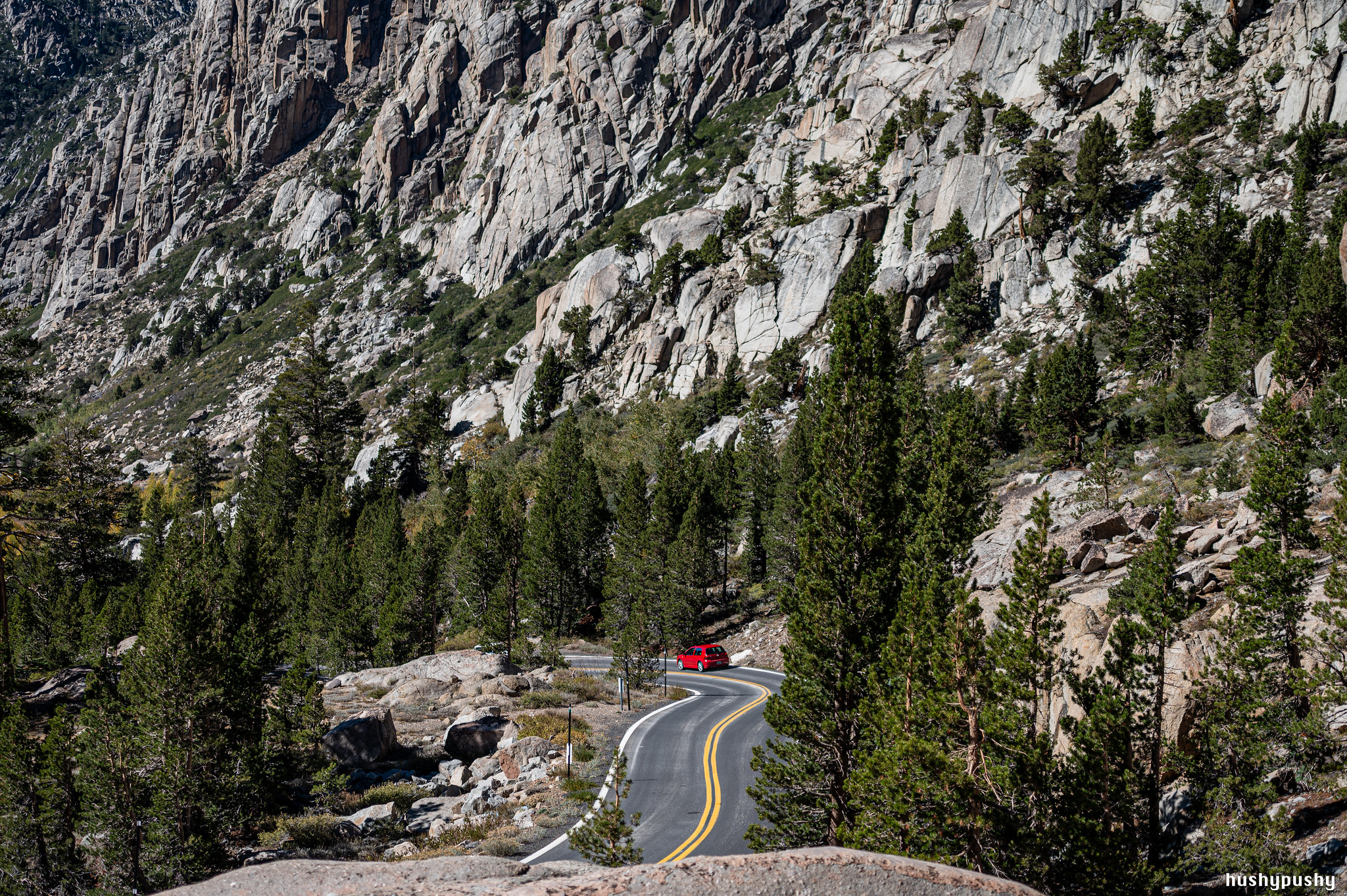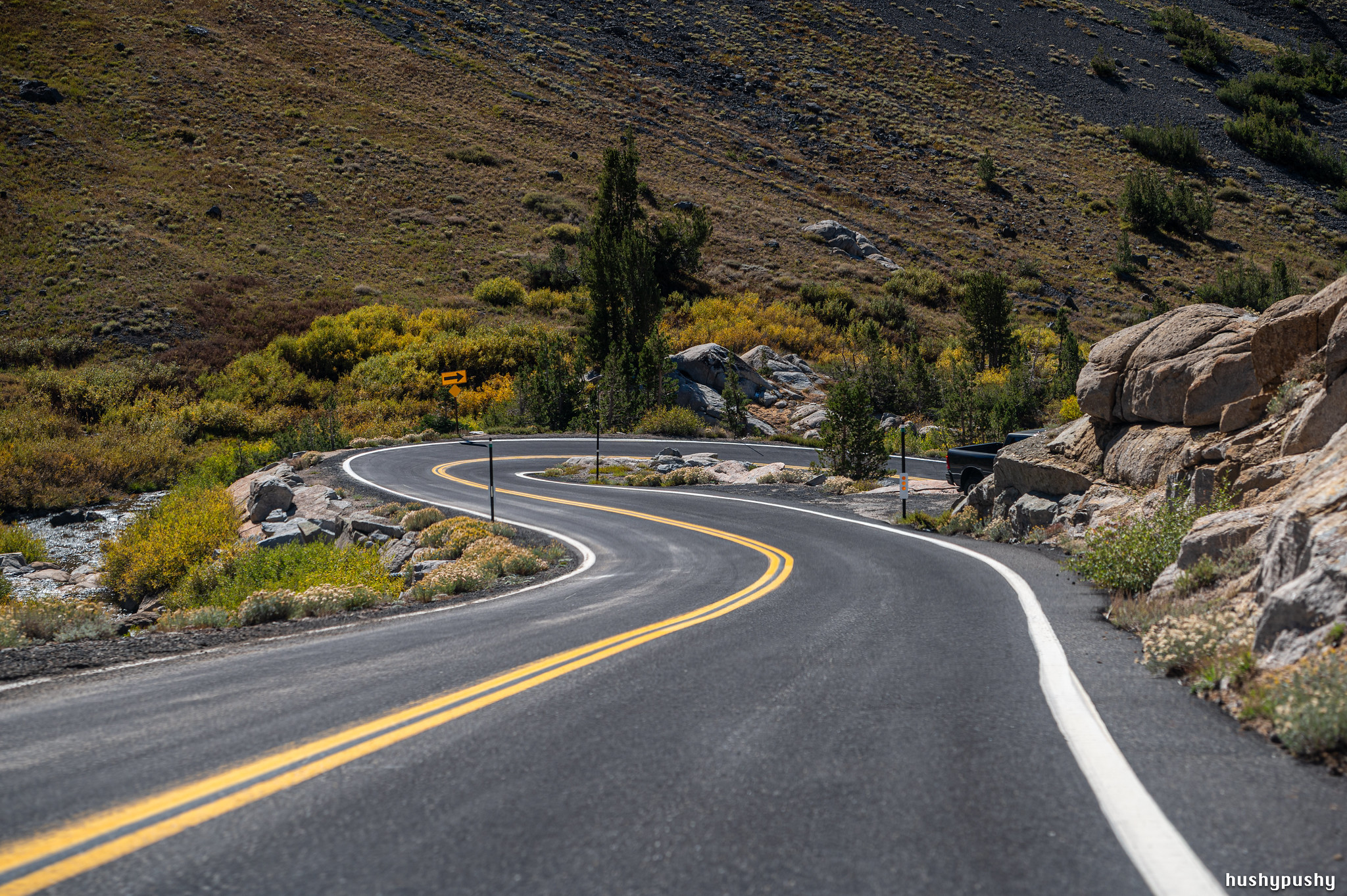 With so many twists and turns, sometimes the polarizer doesn’t get turned the right way; I almost edited this one in black and white as a result. It’s so fun to fly over crests on a road like this.