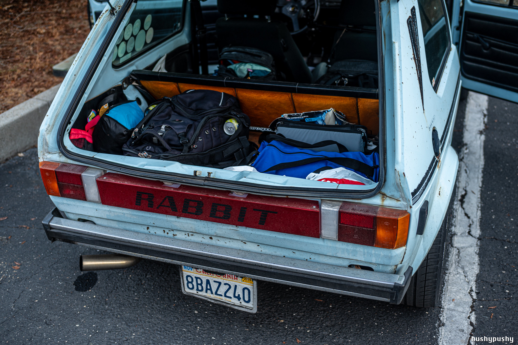 I also ended up appreciating the Rabbit even more. My BRZ is an angry ricer car that regular people don’t really know about and car enthusiasts don’t really care about, but the reception of the Rabbit is completely different. Random traffic coming the other way would wave or give us thumbs ups; some random dude came up to us in the Autozone parking lot to praise the car. And when we stopped, curious rally-goers gathered to poke around and check out all the interesting mods.